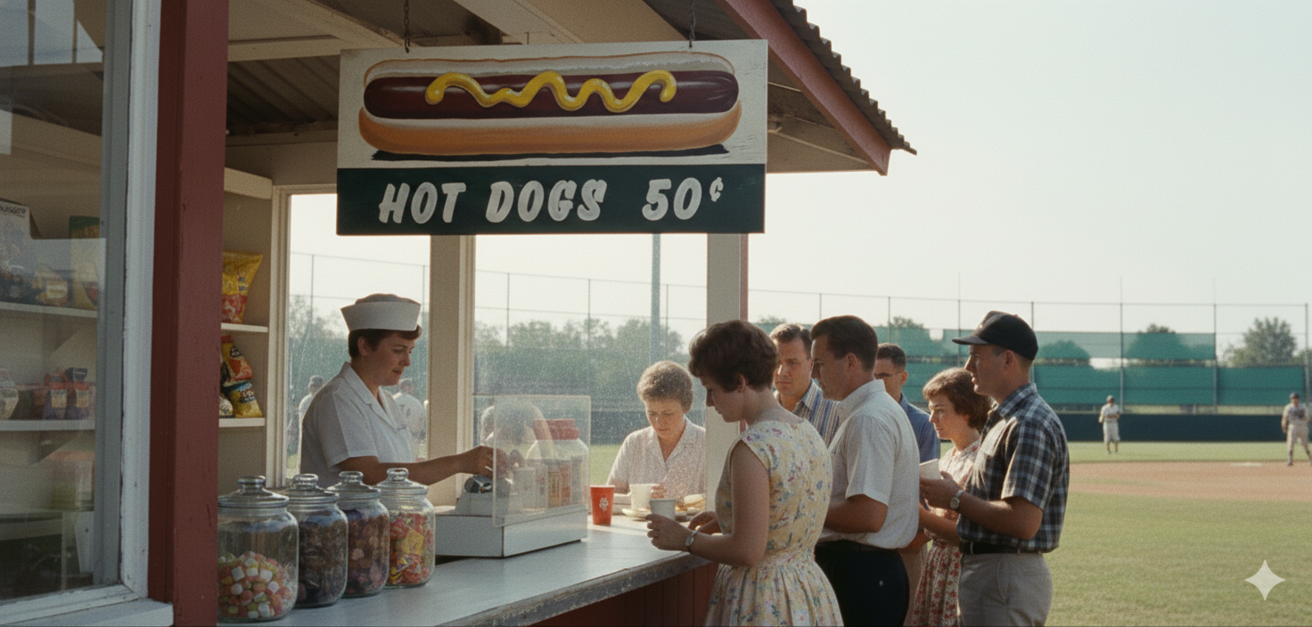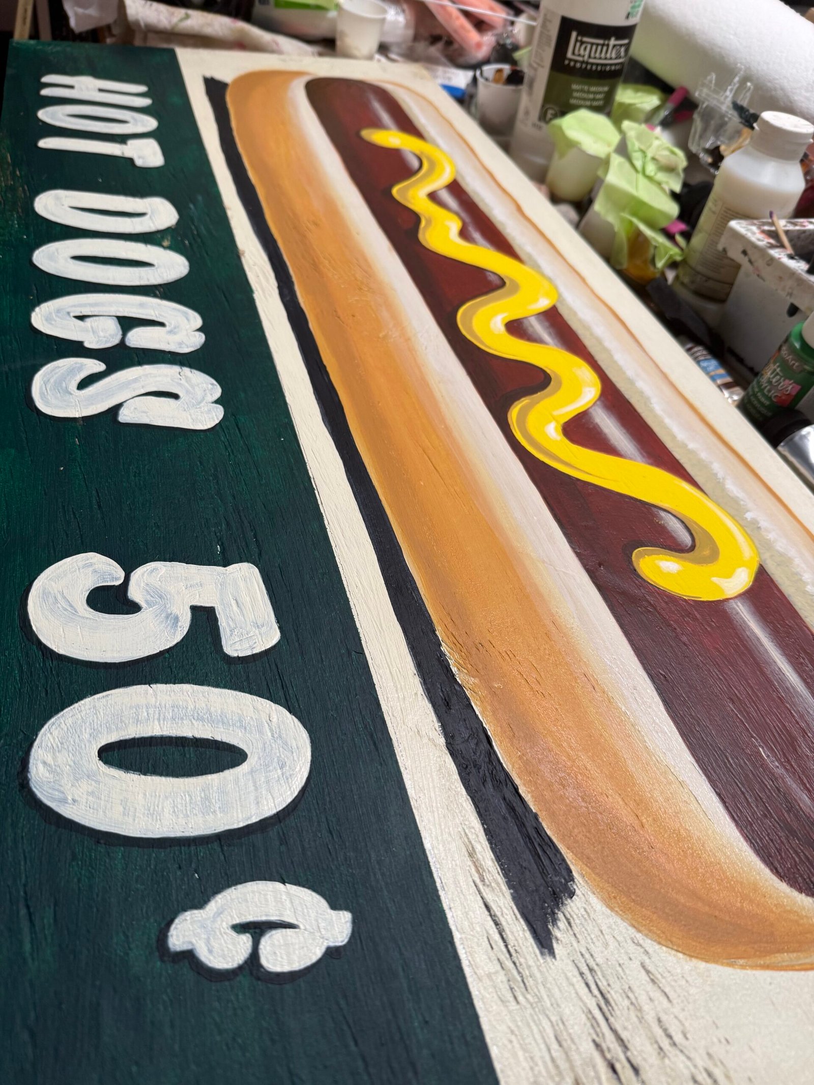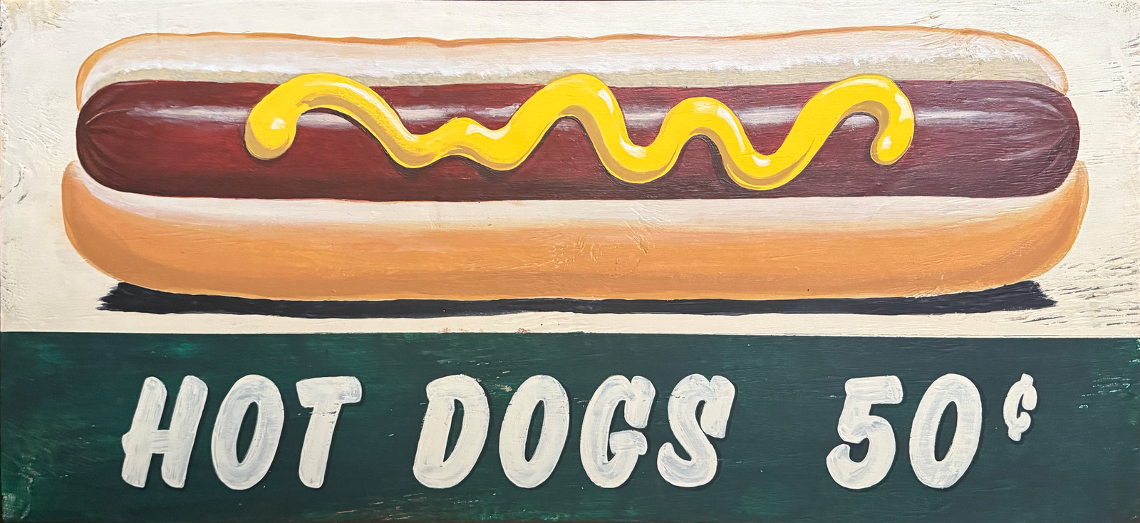 Created In the style of a hand-painted concession sign from the late 1960’s at the local ball park in your home town.